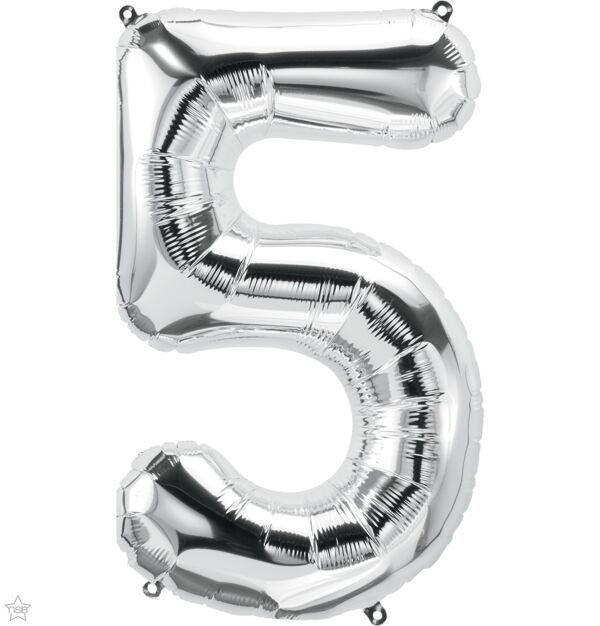 34" Silver Number 5 Balloon